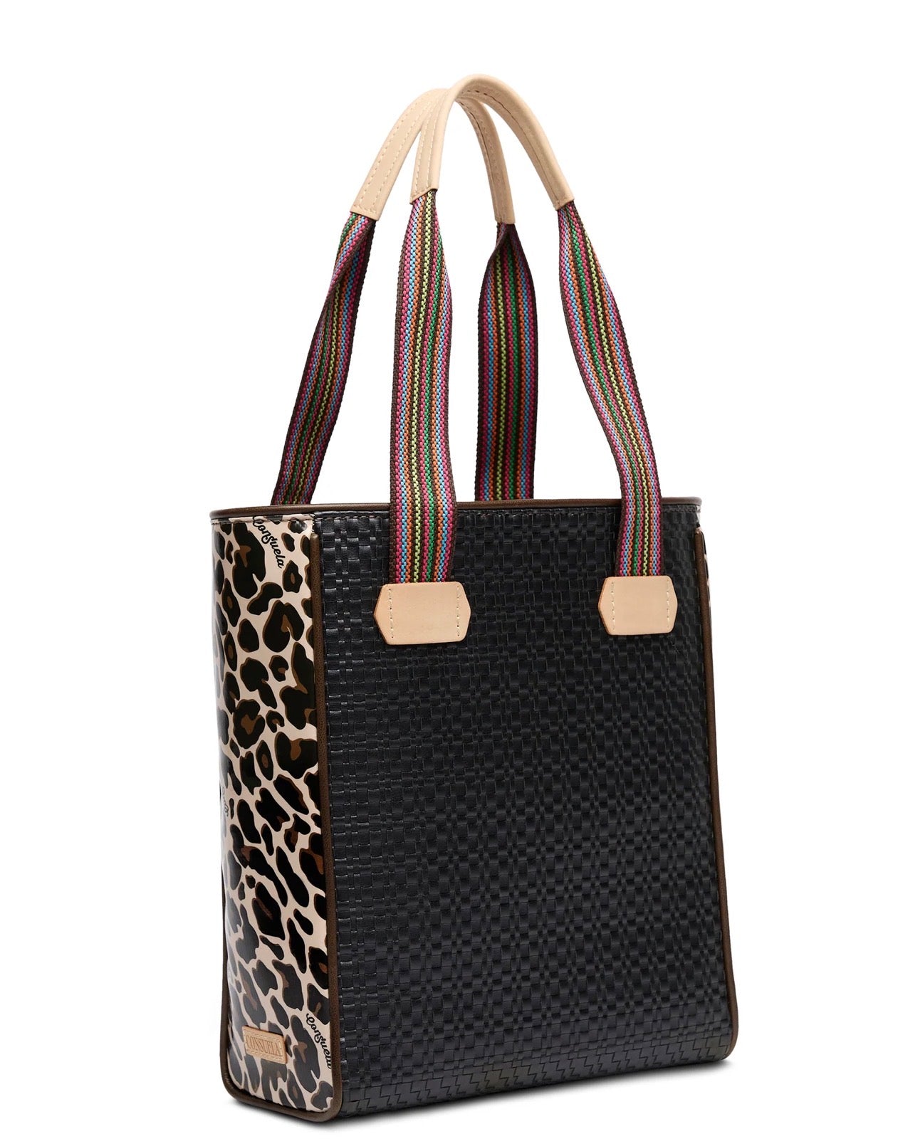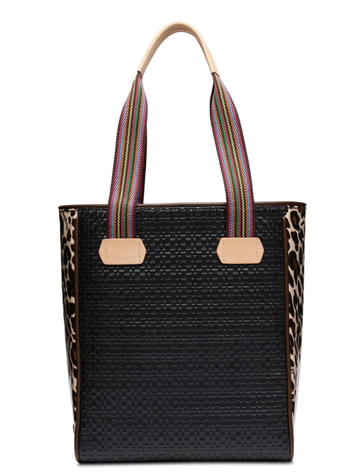 The Chica Tote is the smaller version of our signature Classic Tote. With a slim silhouette perfect for life-on-the-go, the Chica carries all you need with ease. Topped with comfortable woven handles, this multi-functional tote is trimmed in natural leather and crafted to hold its shape. Our tote features a roomy interior and pockets.